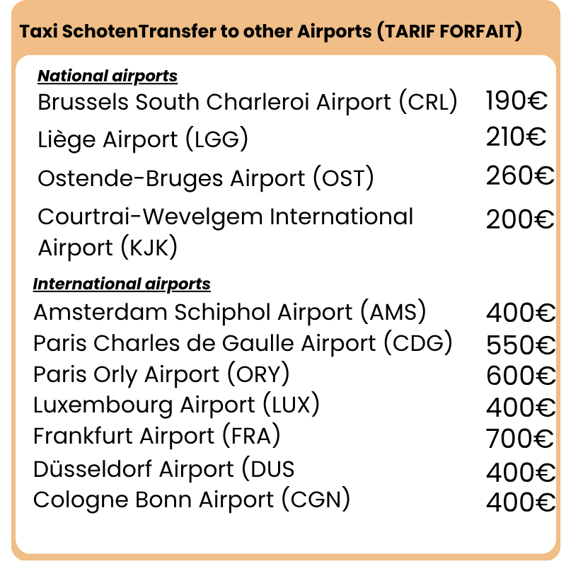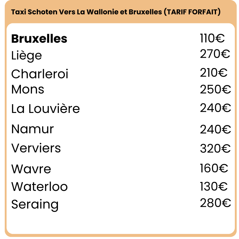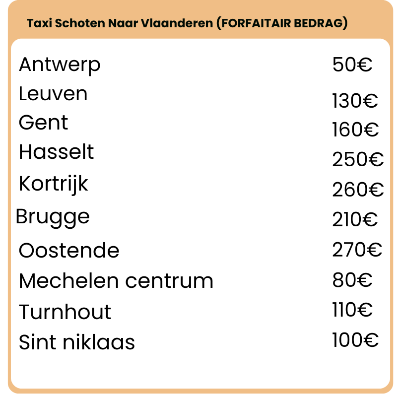 Onze forfaitaire tarieven zijn berekend vanaf het stadscentrum van de vermelde bestemming.